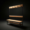 Скамейка с вешалкой для раздевалки размером 1,5 метра, выполненная из прочных материалов, идеально подходит для общественных мест.